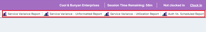 Helpful Hint: There are links to these same 3 reports available along the top of the Scheduling desktop/screen. The Service Variance and Service Variance-Utilization report links are also mirrored at Time Records. Note: access to the reports from any of these areas of the program are dependent on role configuration and user/role assignment.