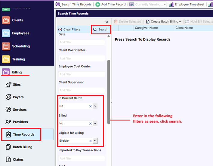 9. To verify the batch billing created, click on the Batch Billing desktop, and click Search.