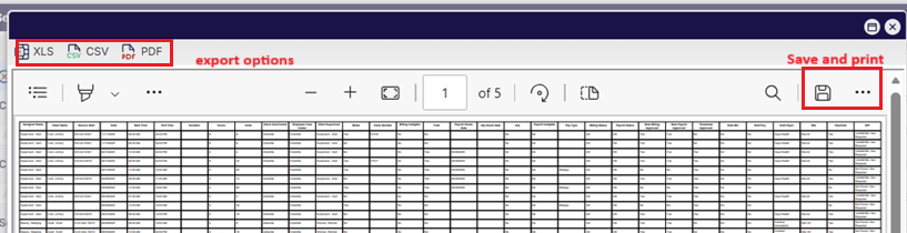 - In the export viewer, choose XLS (Excel), CSV (Comma Separated Values), PDF or DOCX.