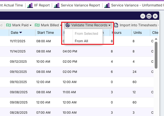 Validate Time Records: This function is intended to support Time Records Automation as it allows you to present validations at any time.
