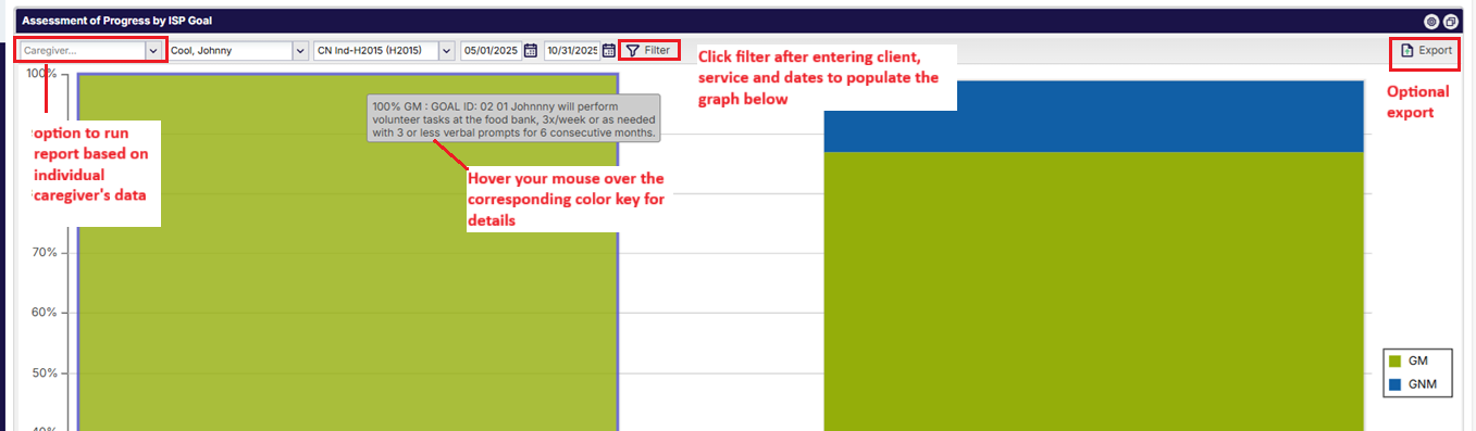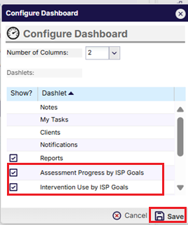 - Navigate to the Assessment of Progress by ISP Goal dashlet.