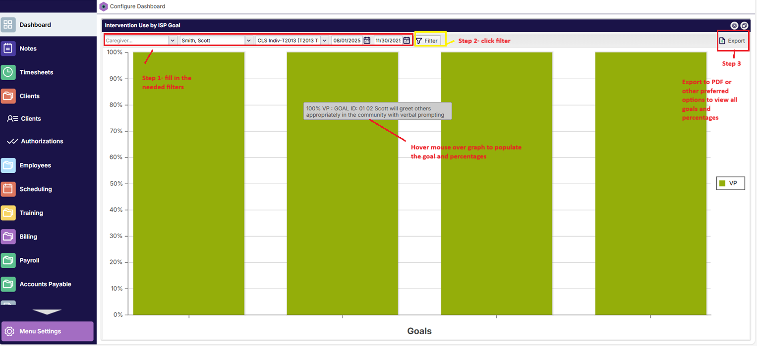- Navigate to the Intervention Use by ISP Goal dashlet.