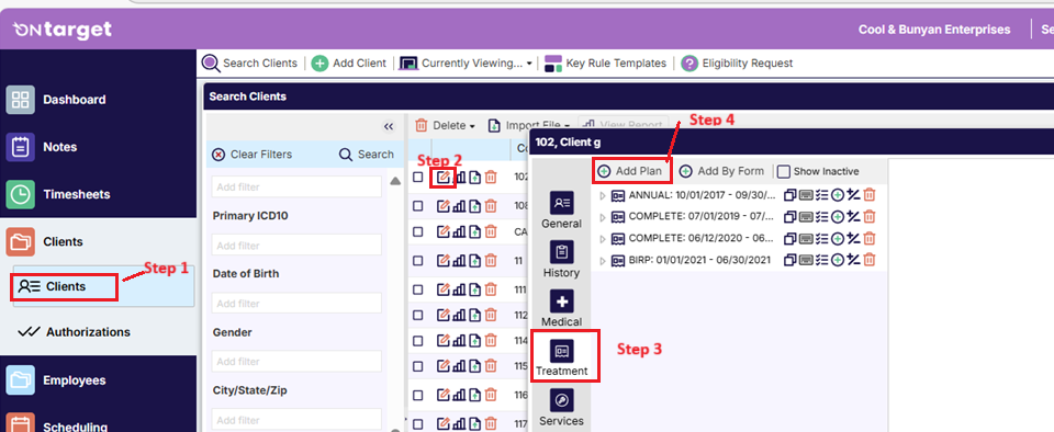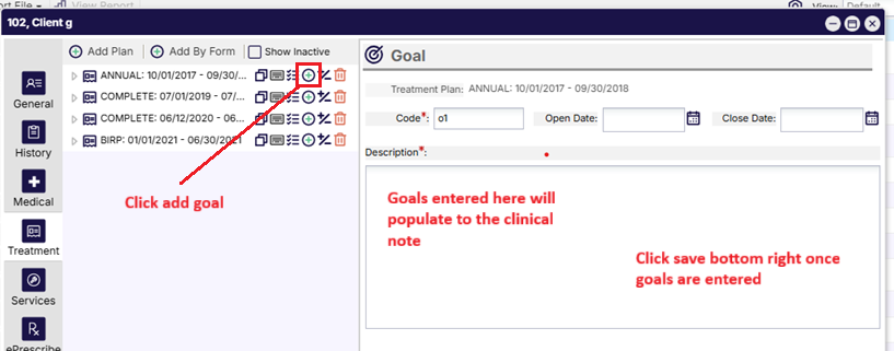 - Helpful Hint: If there are multiple goals to enter, repeat the above steps by clicking on the Add Goal button against the treatment plan line.
