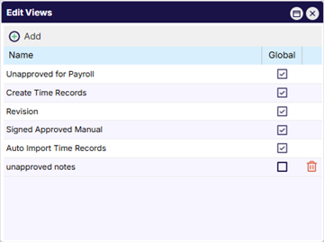 5. Click on the Delete icon to delete a view or the Global checkbox from the “Edit Views” dialogue to make a view Global.