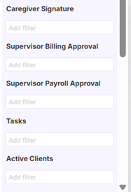 - Pay Period- will allow you to filter notes associated to a certain pay period that was configured based on your agency’s specific pay cycles entered at Configure>List Configure>Timesheets> Pay Periods.