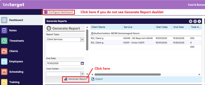 2. Select Client Services from the Generate Reports drop-down
