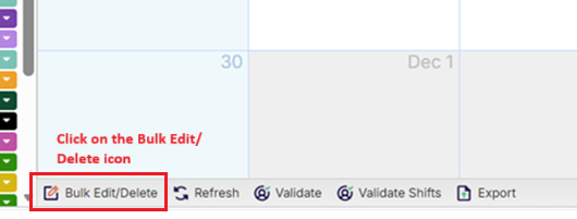 - From the calendar view, click on the Bulk Edit/Delete button