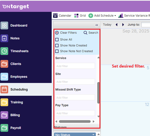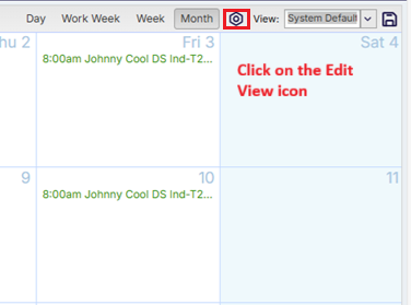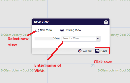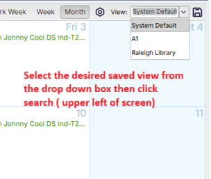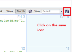 - From the calendar view, set the desired filters and click on the Save button (upper right corner of the screen).