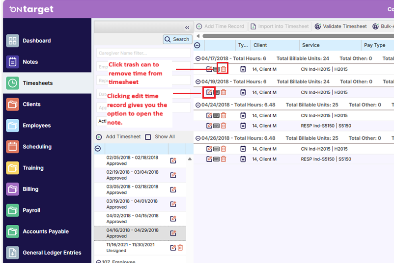 - You may also need to go to Schedules and review any scheduled shifts for the pay period in which the note has not yet been written.
