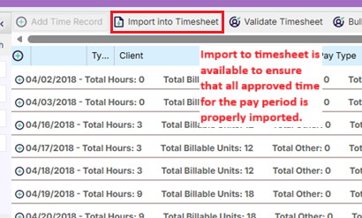 - Helpful Hint: Although the caregiver should be responsible for managing the import of time into his or her timesheet, circumstances may arise that prevent this from happening. Doing this ensures that any notes that display and have not been imported, get imported into the timesheet (if deemed appropriate to import any time shown).