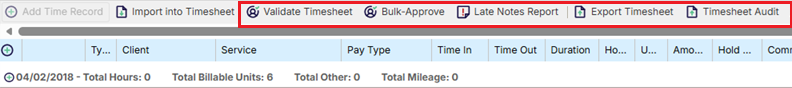 The following are some other helpful buttons/functions found at the top of the timesheet: