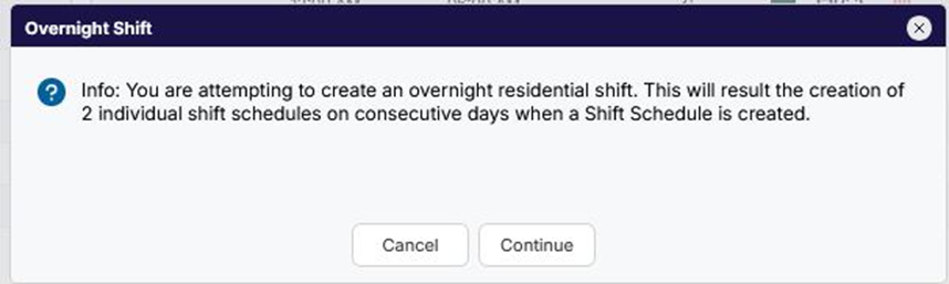Please Note: Use of Residential Overnight Shifts requires the associated service(s) to be configured with Multi-Day templates in order for Shift Notes to render correctly.