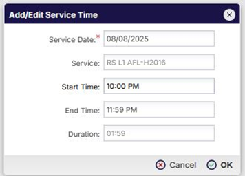 Users have limited control over the times displayed within an overnight Shift Note. The automatically added date and time entries cannot be removed, nor can additional time entries be added. Users may, however, edit specific time fields as outlined below: