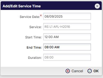 Please Note: This configuration is available only when the selected Service record is configured for Shift Scheduling and Group.