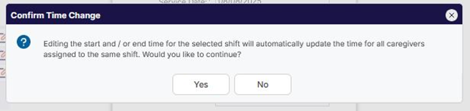 caregivers assigned to the service note. When time is edited, a notification is