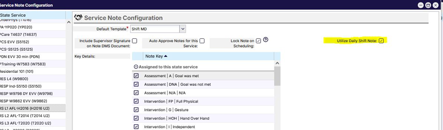 Please Note: Enabling the “Utilize Daily Shift Note” option requires the selected Service to be configured with a Multi-Day Default Template.