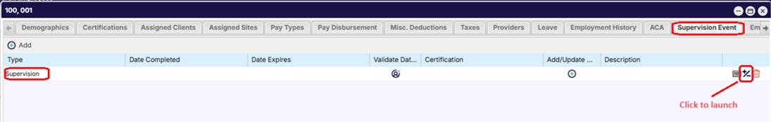 - Navigate to the relevant profile tab at the top of the screen (for example, Employee Supervision).