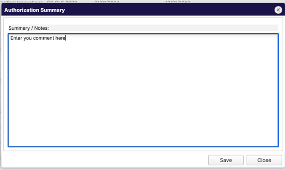 OnTarget has introduced a new feature that allows users to add comments directly to an Authorization record from within the Authorization search grid. These comments are associated with the overall Authorization record, which may include multiple services.