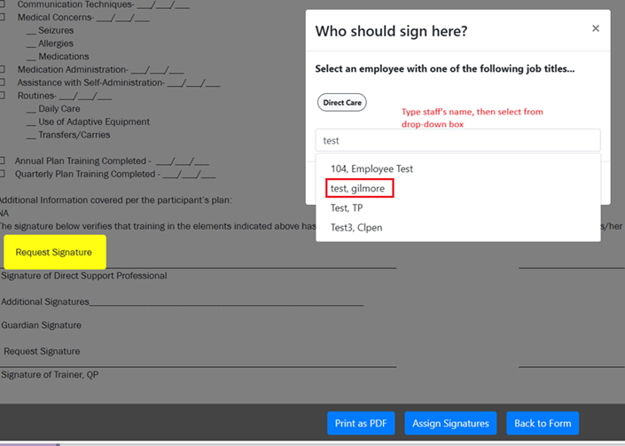 - Type the name of the individual who needs to sign.