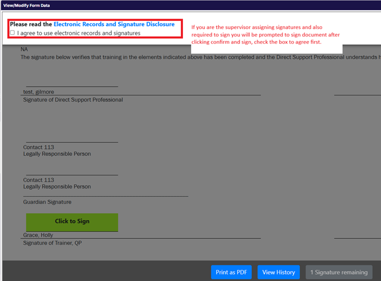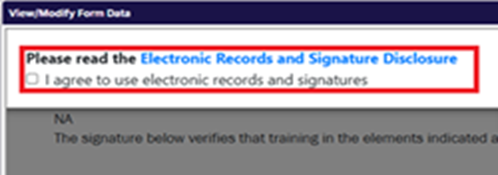 - Check the box in the upper left corner to agree to the electronic signature